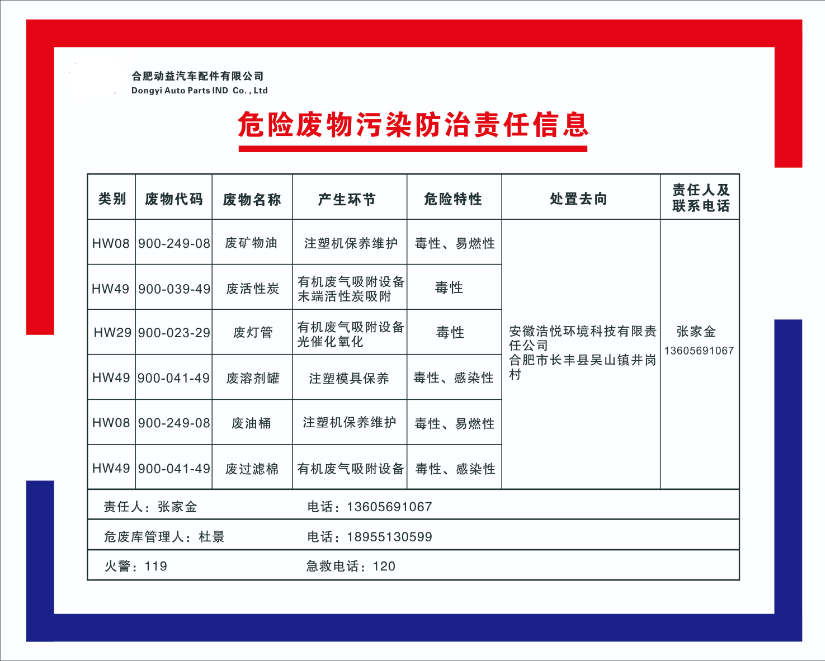 2022年合肥动益汽车配件有限公司-危险废物污染防治责任信息公开