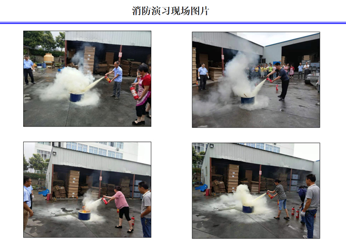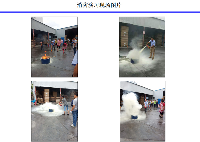 宋总总结:本次演练总体达到了预期效果,全体人员熟悉了纸箱仓库的突发环境事件件应急救援演练流程,包括火灾应急救援的流程。学习和掌握了灭火器及消防栓的使用方法,发现消防水压力能够满足要求,也锻炼了4个应急救援小组。
