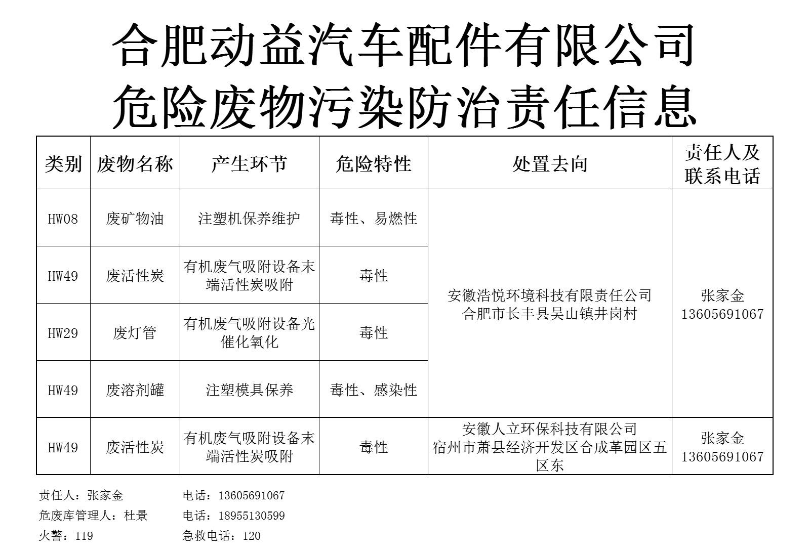 2020年合肥动益汽车配件有限公司-危险废物污染防治责任信息公开