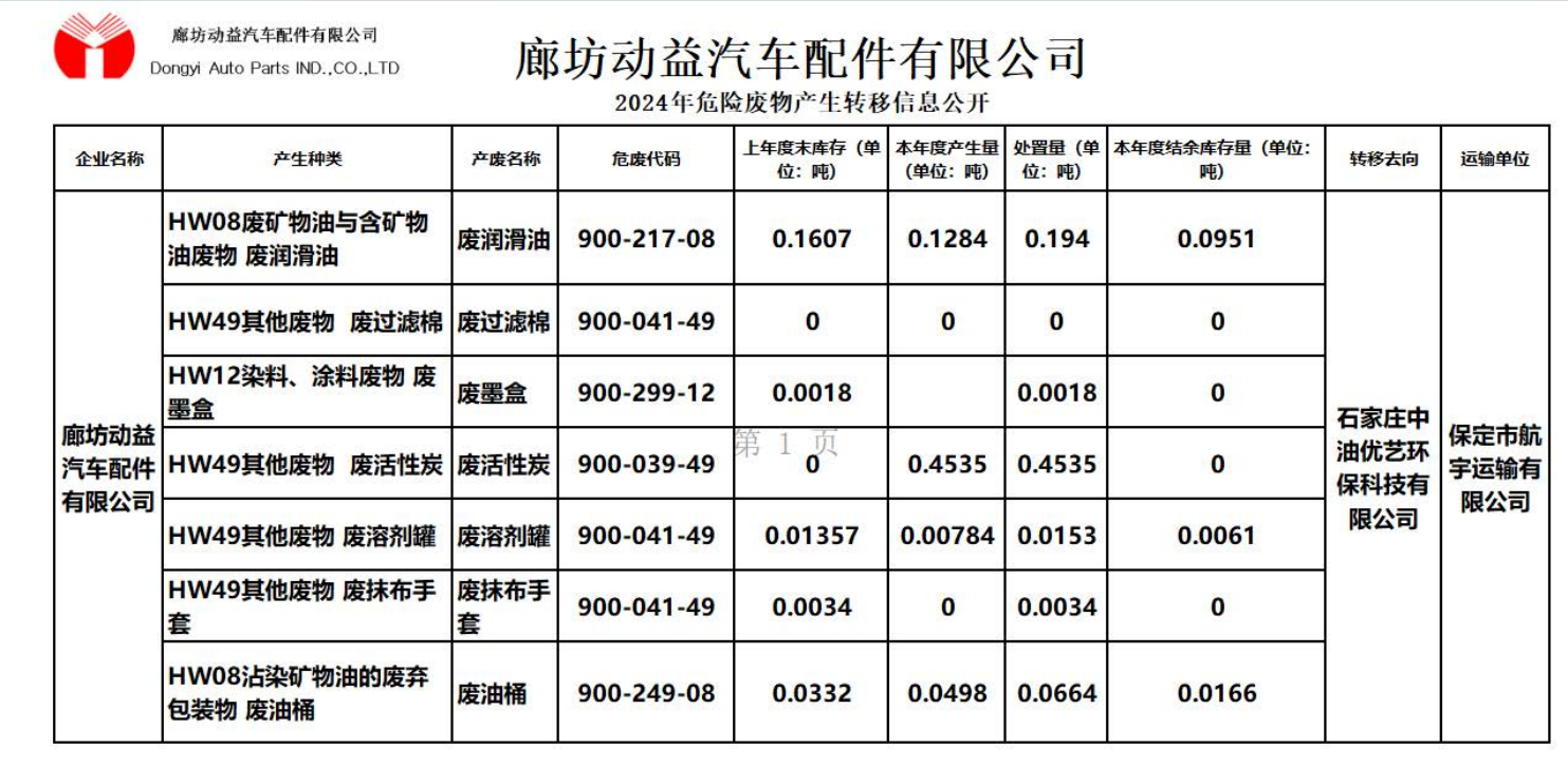 2024年下半年廊坊动益危废废物产生转移信息公开