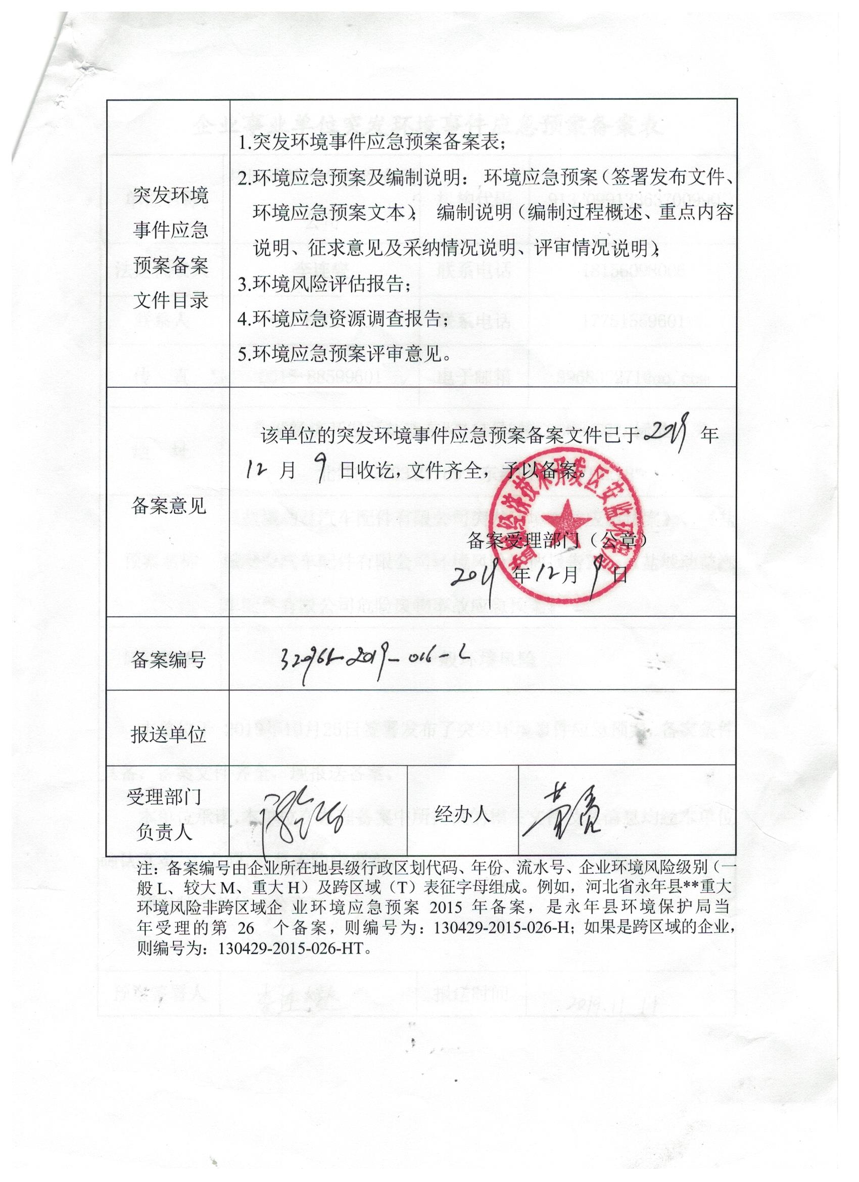 2019年盐城动益汽车配件有限公司-突发环境事件应急预案备案表