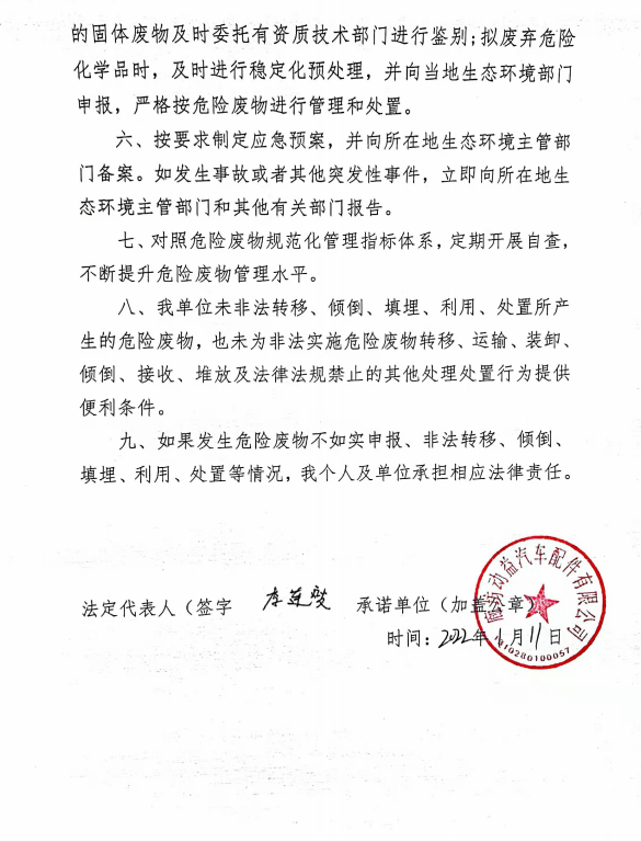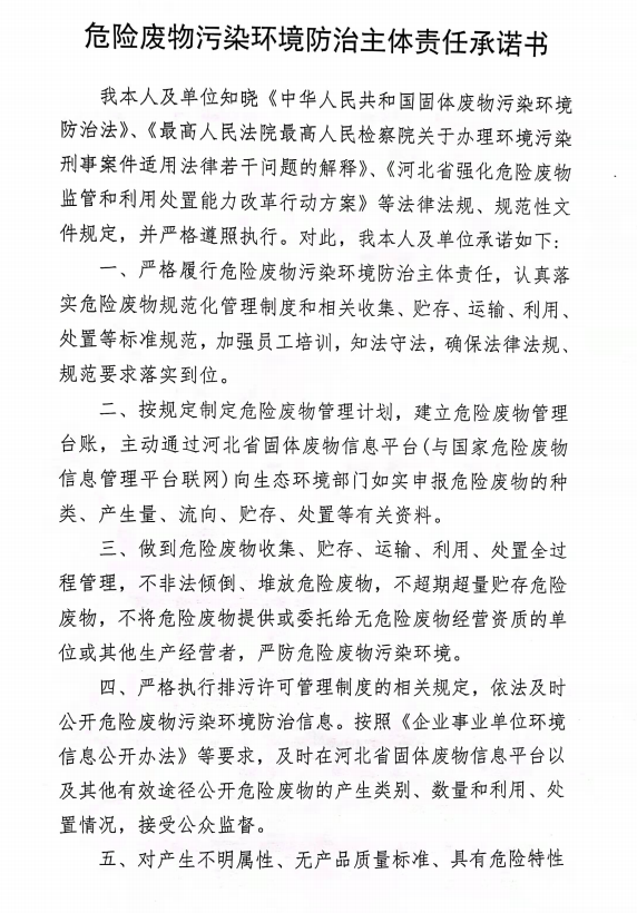 2022年廊坊动益危险废物污染环境防治主体责任承诺书