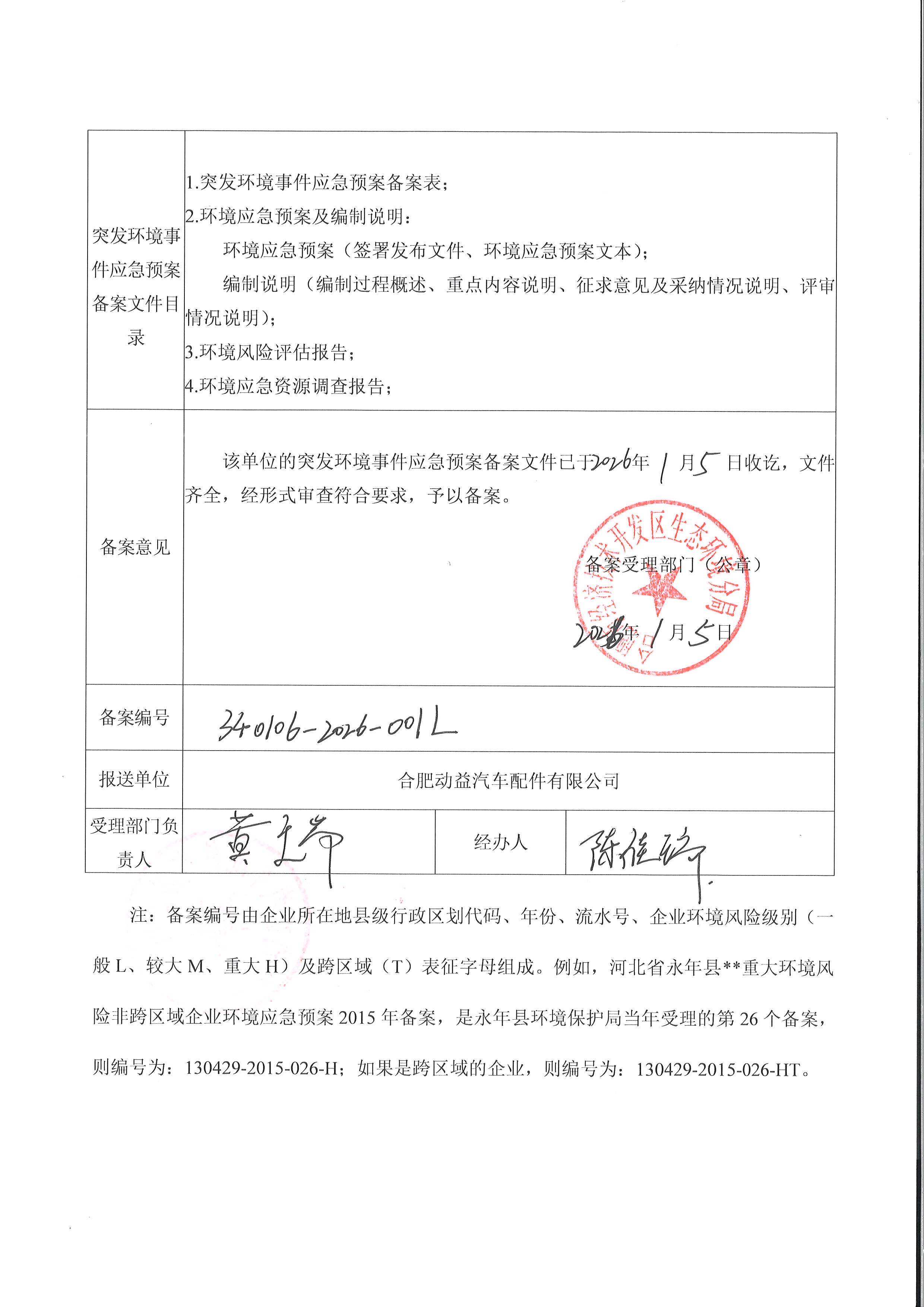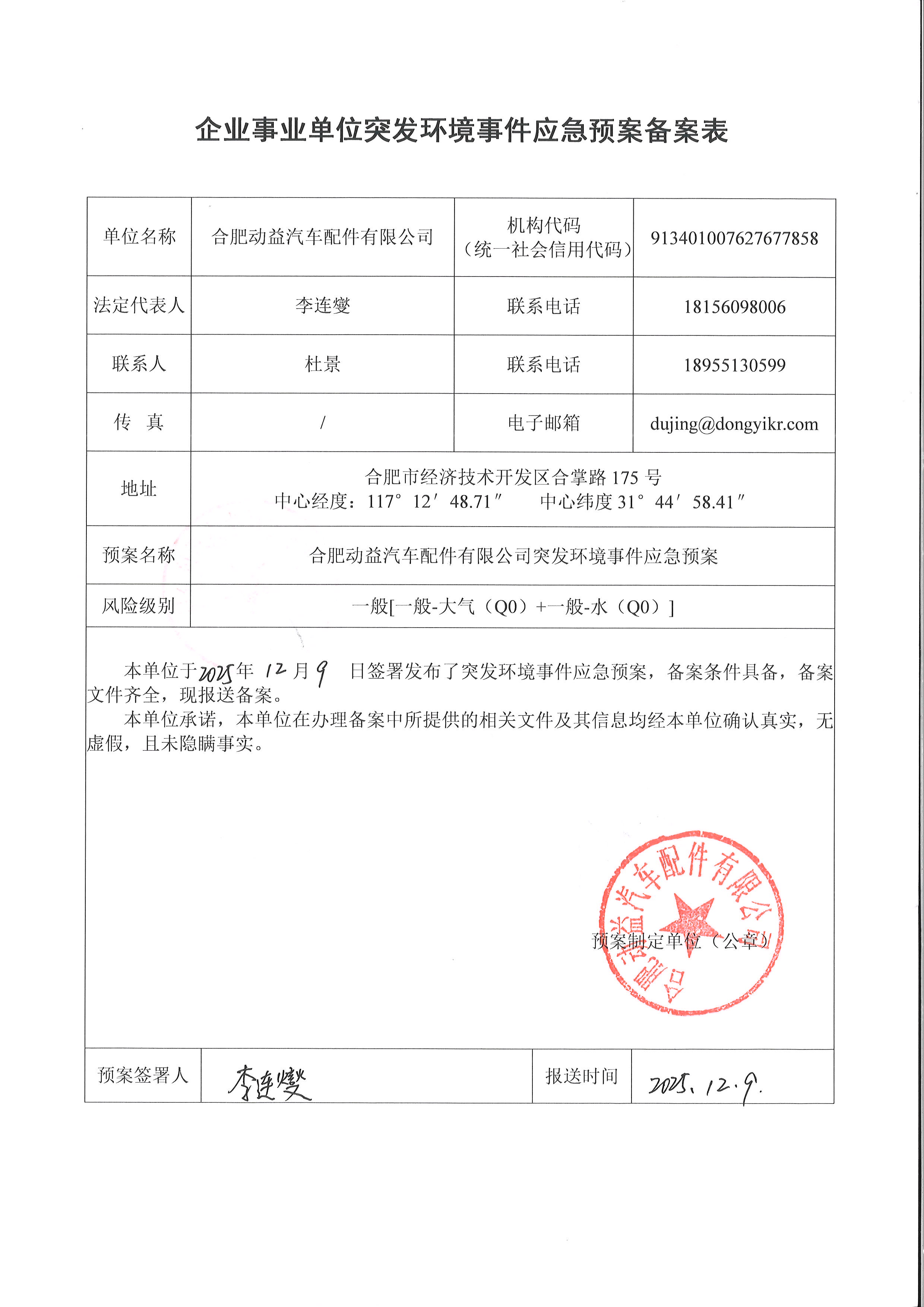 合肥动益突发环境事件应急预案备案(340106-2026-001L)
